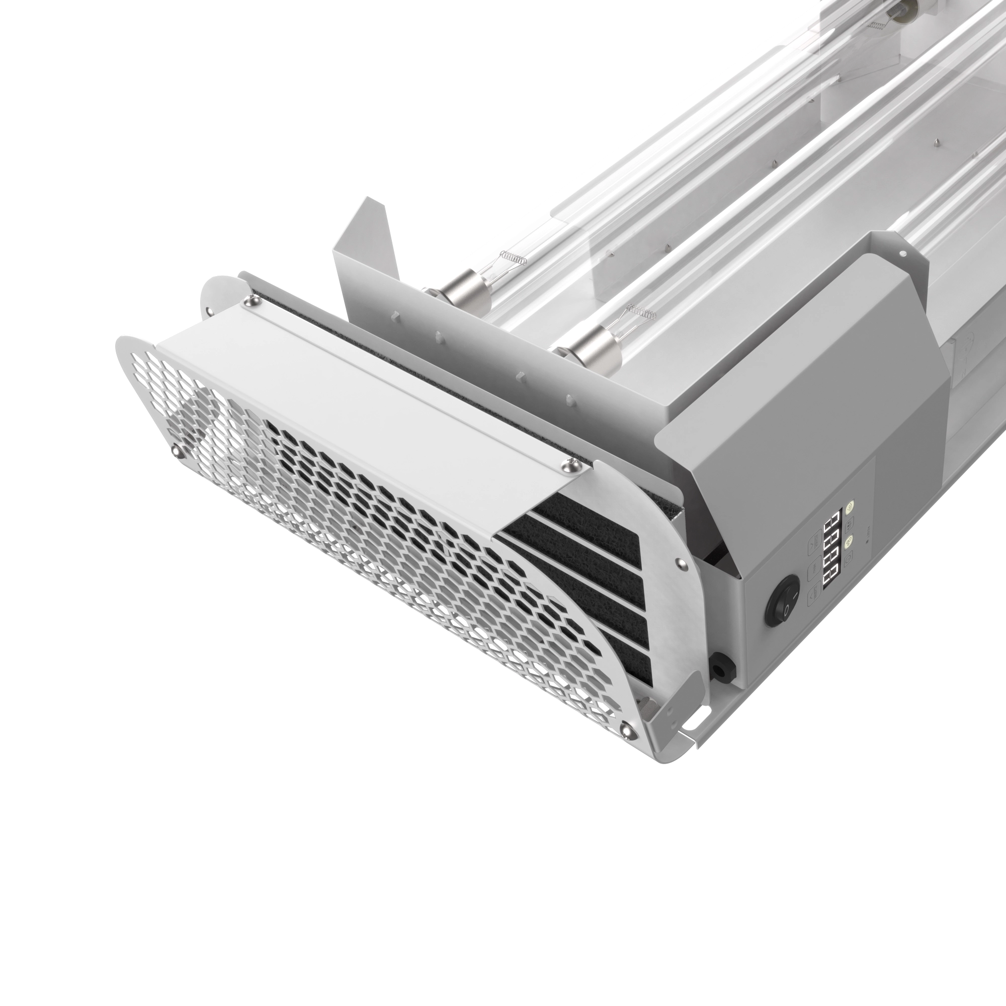 Дополнительное удобство эксплуатации – электронный дисплей, который помогает отслеживать срок эффективной работы бактерицидного рециркулятора и сообщает о необходимости замены ламп (по истечении срока их эффективной работы – 9000 часов).