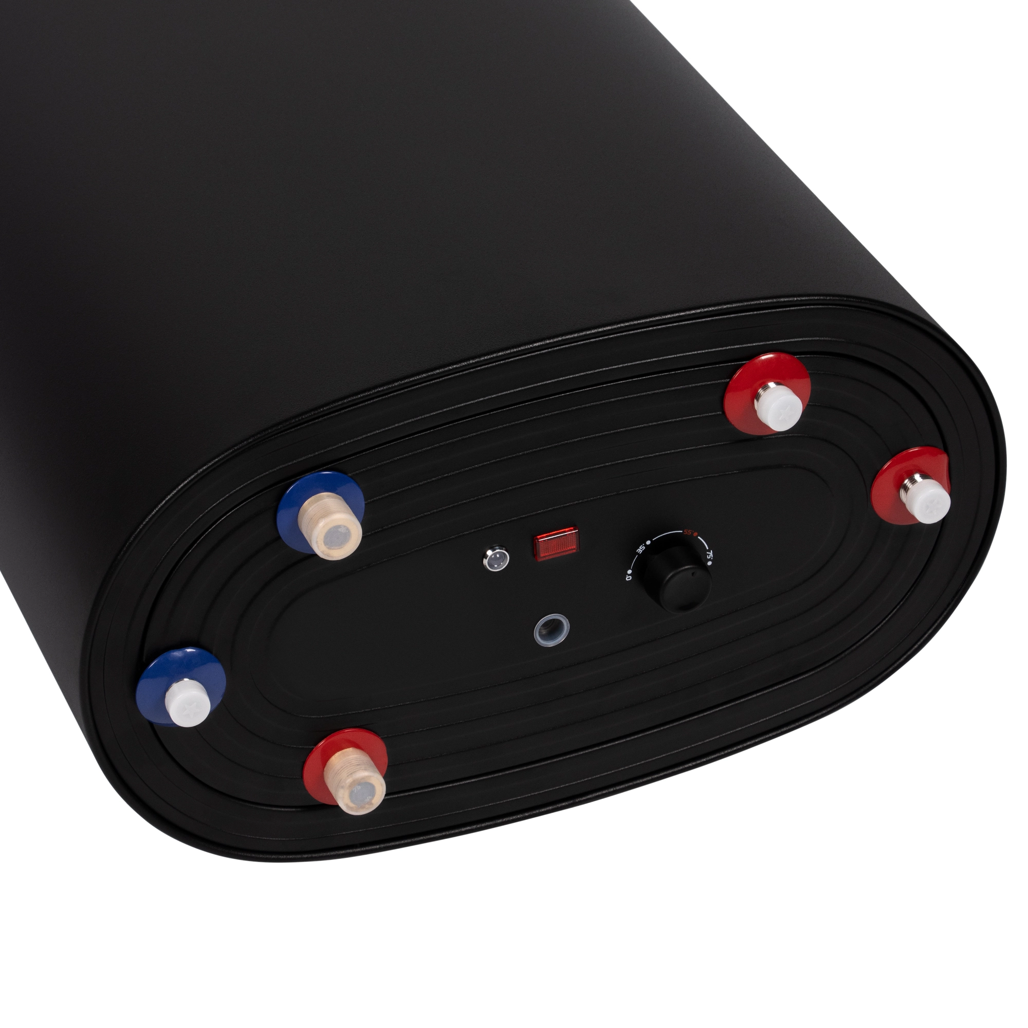 Дополнительно в бойлере установлен ТЭН 2 кВт с механическим блоком управления, с помощью которого можно легко регулировать температуру в диапазоне от 30 °С до 75 °С. Это позволяет нагревать воду при отключенном котле.