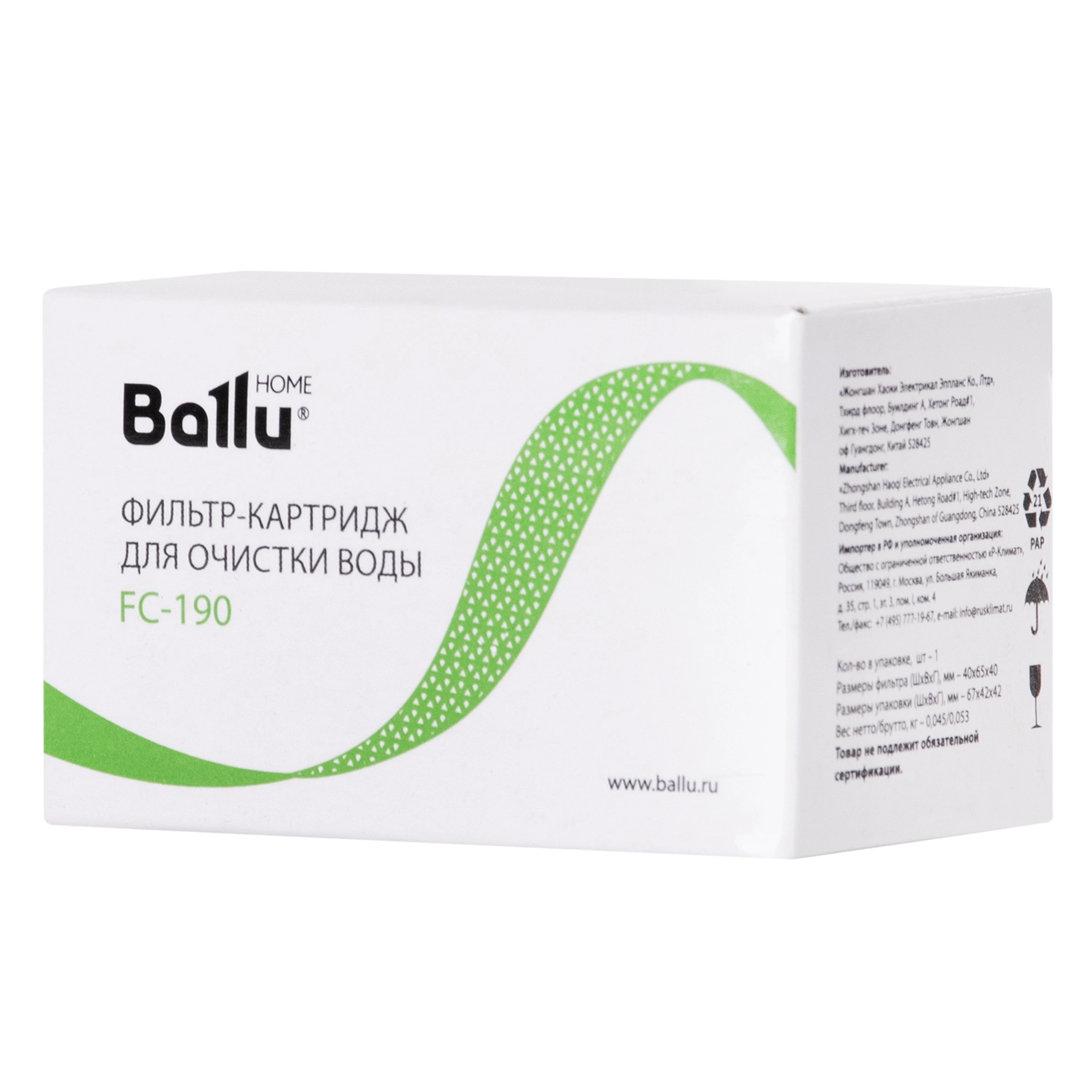 Фильтр-картридж Ballu FC-190 содержит в себе ионообменную смолу, очищающую воду для увлажнения от избытков солей жесткости. При длительном использовании увлажнителя без замены смолы на приборе и на предметах рядом с ним может появиться белый осадок.