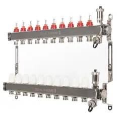 Коллектор Royal Thermo нерж. в сборе с расходомерами 1" ВР-3/4" НР с автомат. воздухоотвод-ми 9 вых.