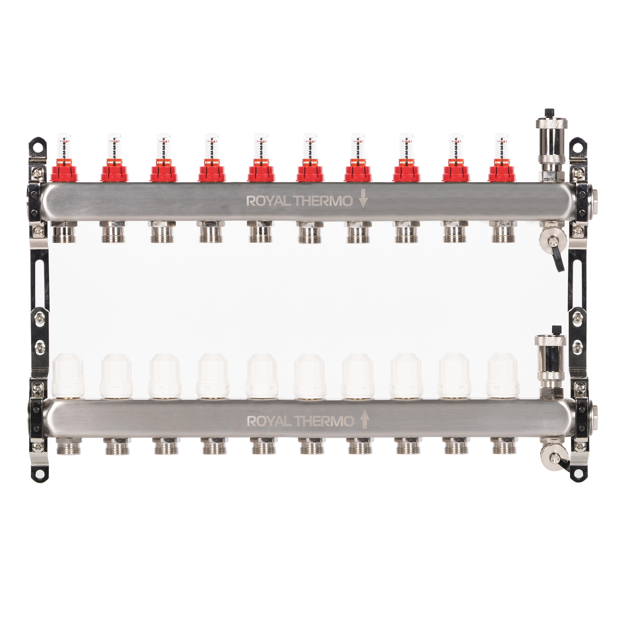 Коллектор Royal Thermo нерж. в сборе с расходомерами 1" ВР-3/4" НР с автомат.воздухоотвод-ми 10 вых.