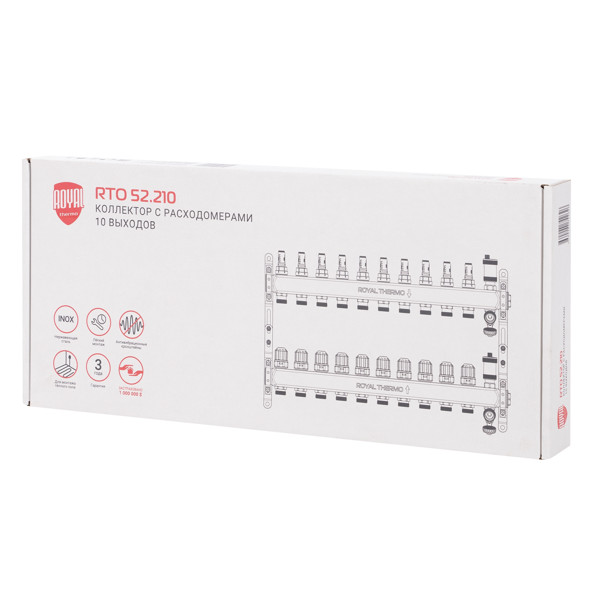 Коллектор Royal Thermo нерж. в сборе универсальный 1" ВР-3/4" НР с автомат. воздухоотвод-ми 10 вых.