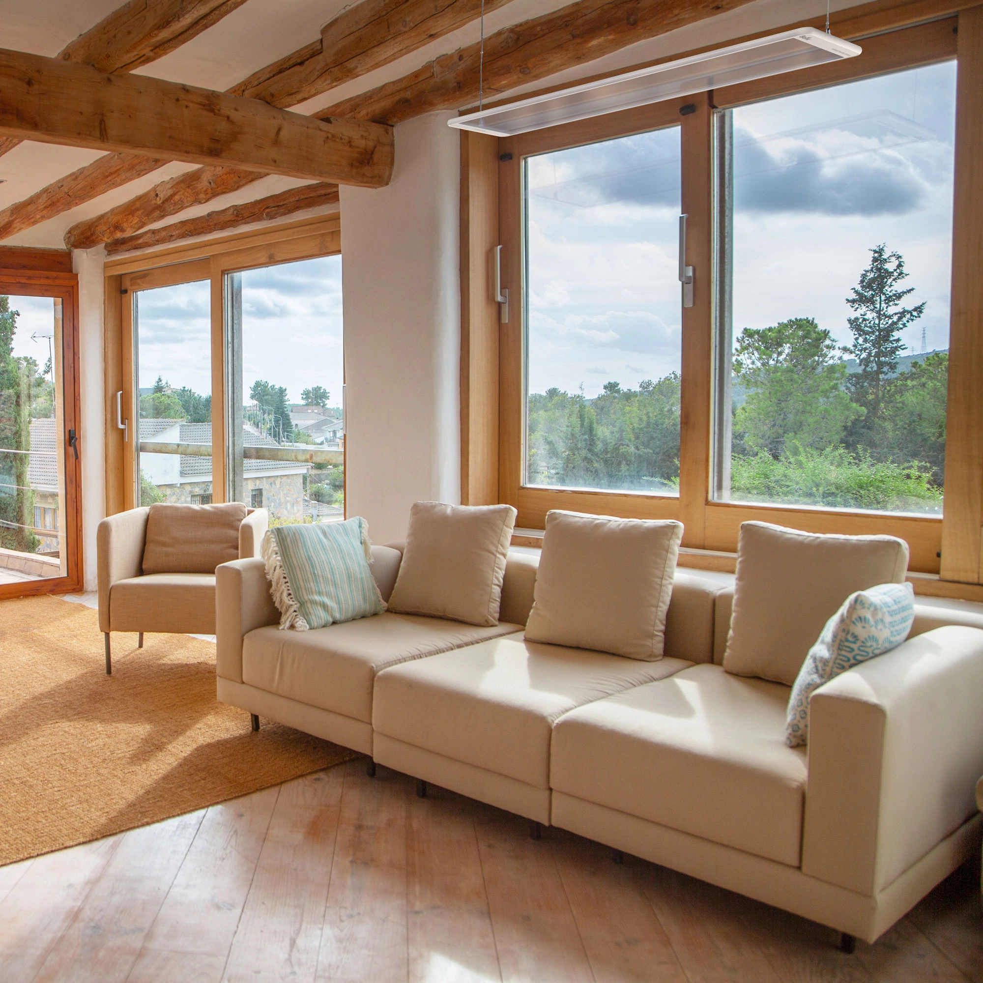 Повышенная степень пылевлагозащиты IP54 допускает применение обогревателей даже во влажных помещениях (ванные комнаты, бани, бассейны). Подвес на тонких незаметных тросах в комплекте.