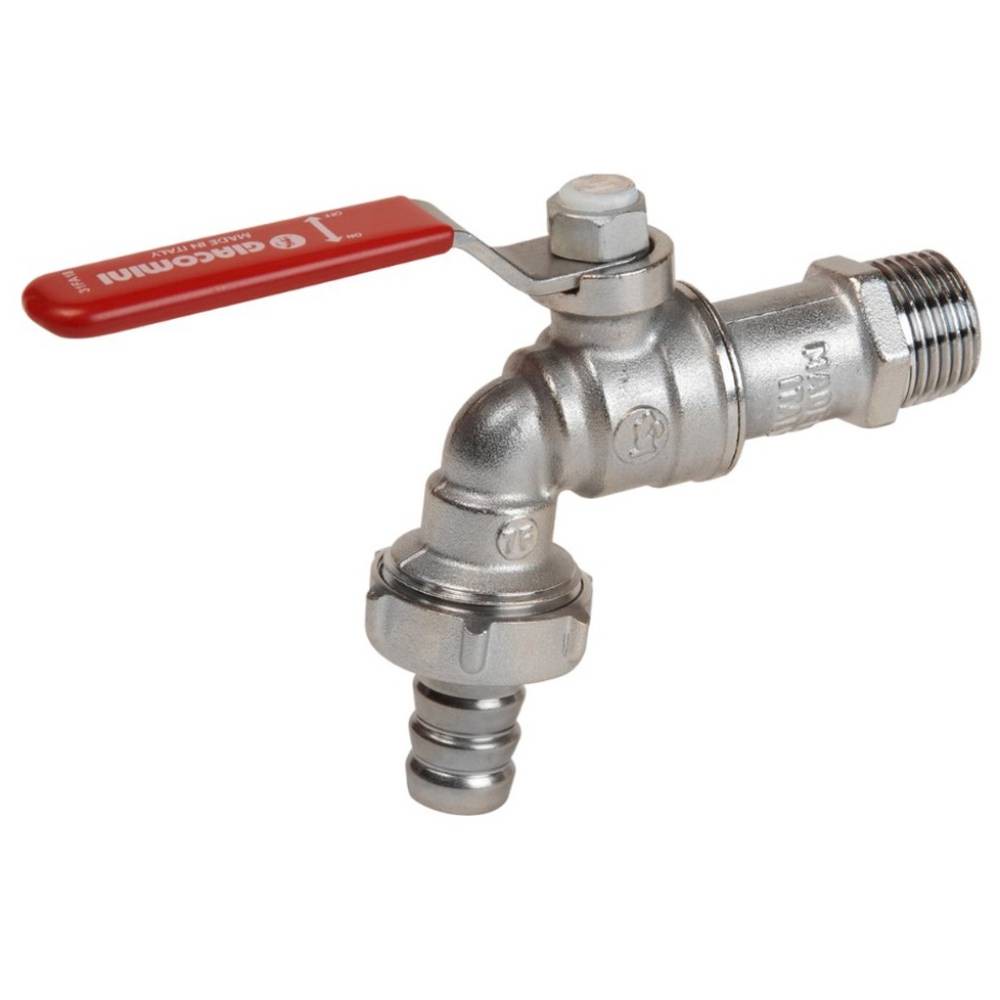 Кран для садового шланга с выводом для резинового шланга, с рычажной рукояткой, хромированный. Краны шаровые торговой марки Giacomini предназначены для установки в качестве запорной арматуры в системах отопления.