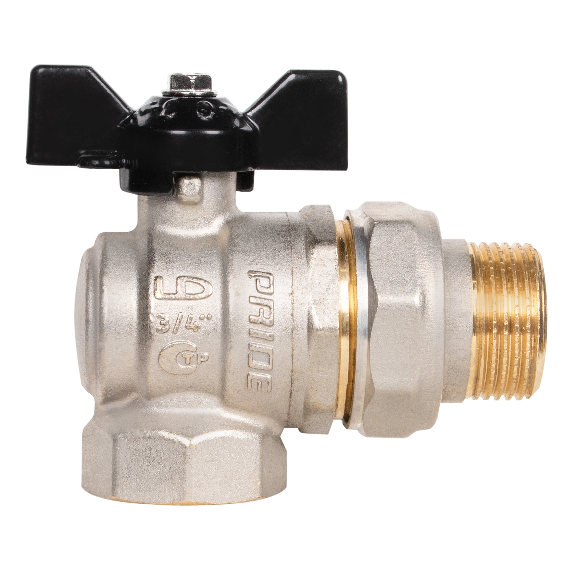 Кран шаровой латунный LD Pride 47.20.В-ГШ.У.Б Ду 20 Ру 40, угловой, вн-американка, (бабочка)