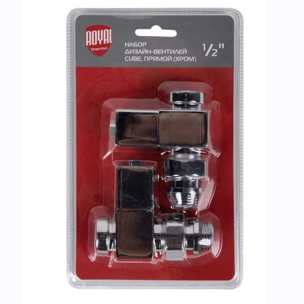 Набор дизайн-вентилей Royal Thermo Cube производится в 3 вариациях: прямой, угловой и осевой