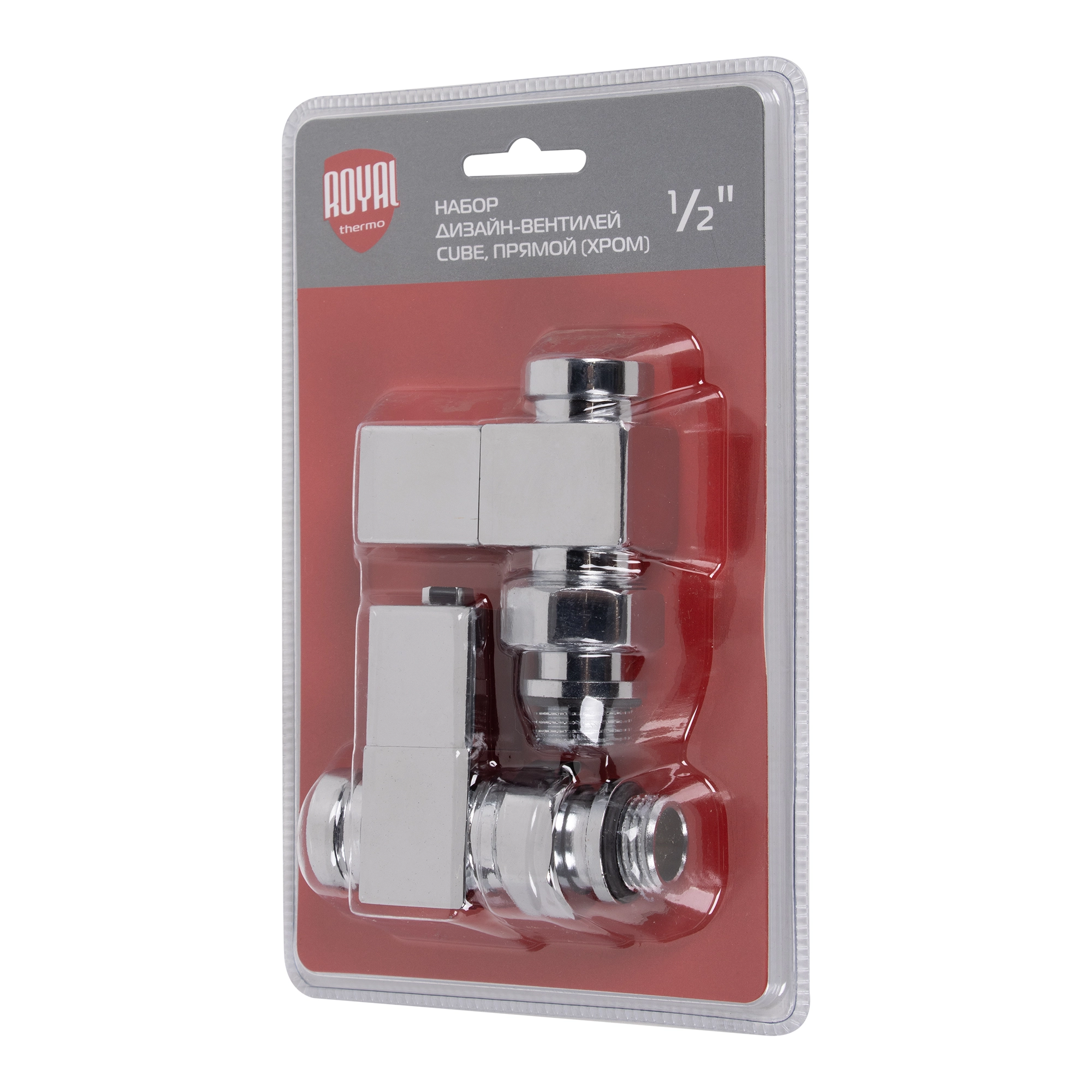 Набор дизайн-вентилей Royal Thermo CUBE, прямой (белый) 1/2"