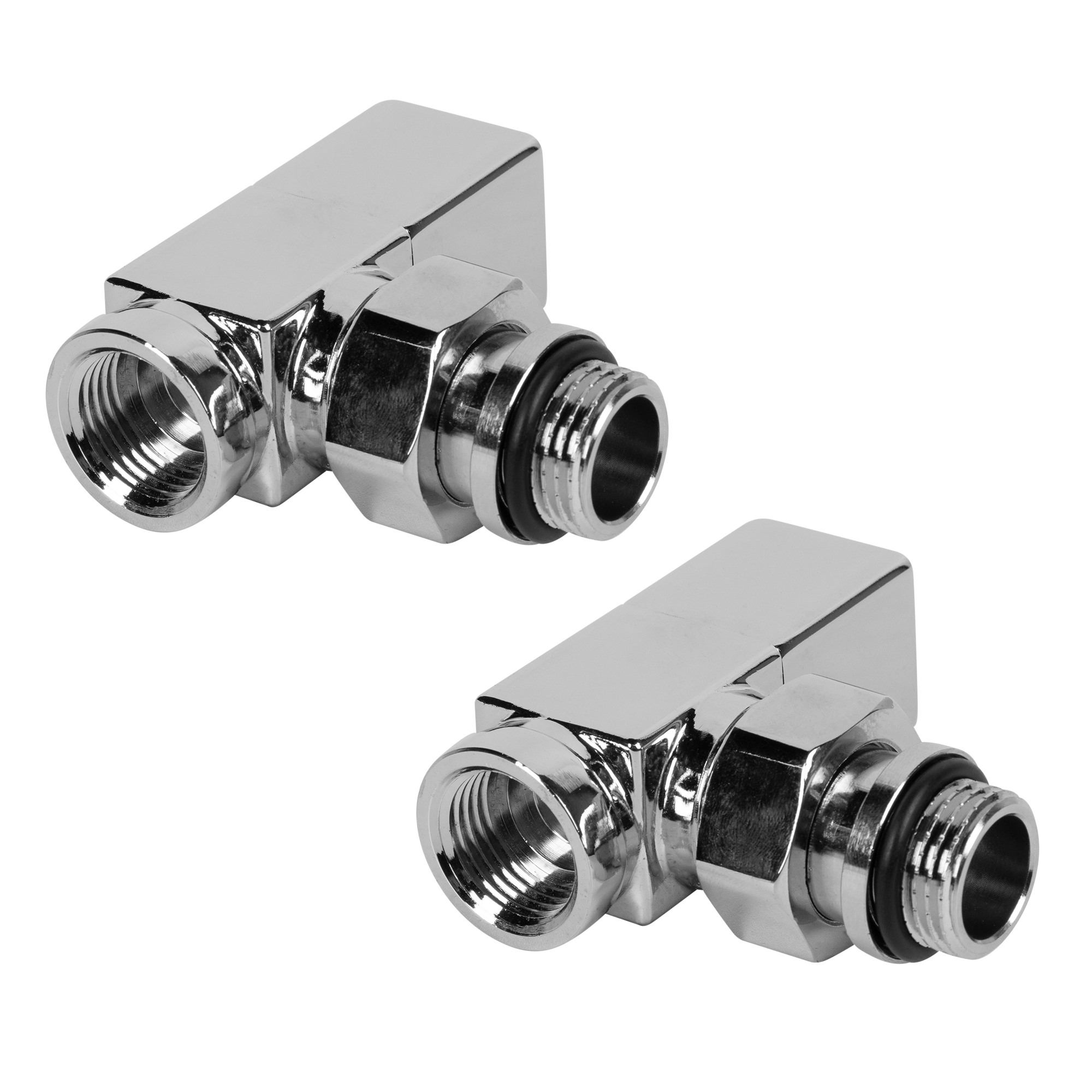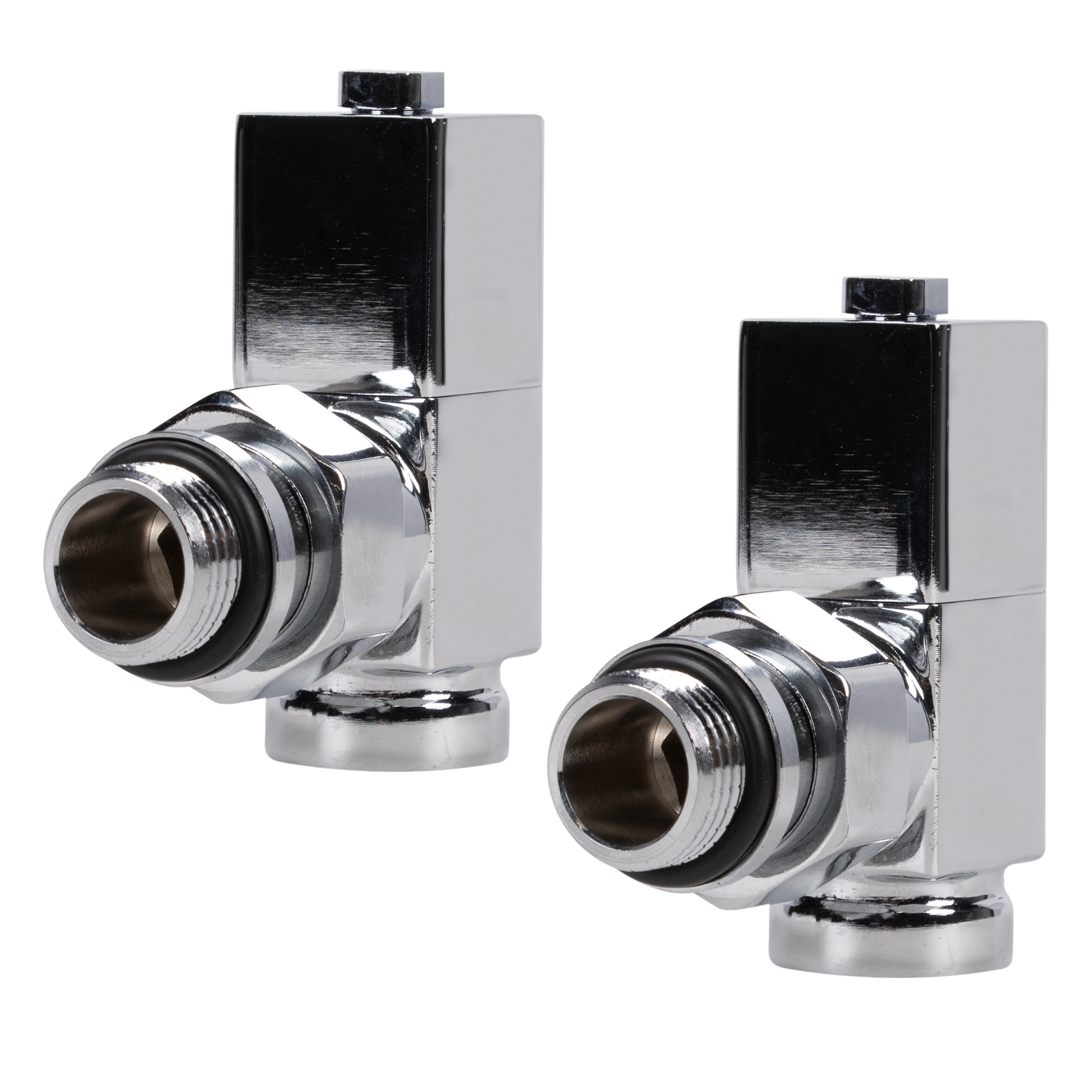 Набор дизайн-вентилей Royal Thermo Cube производится в 3 вариациях: прямой, угловой и осевой