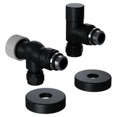 Термостатические наборы серии Design Pro поставляется в необходимой для чистового монтажа комплектации: клапан термостатический для установки на подающий трубопровод, запорный клапан для установки на обратный трубопровод, 2 гайки-фитинга для подключения клапанов к монтажной трубке 15 мм и 2 цельных латунных отражателя с внутренним резиновым уплотнением внутренним диаметром 15,2 мм.