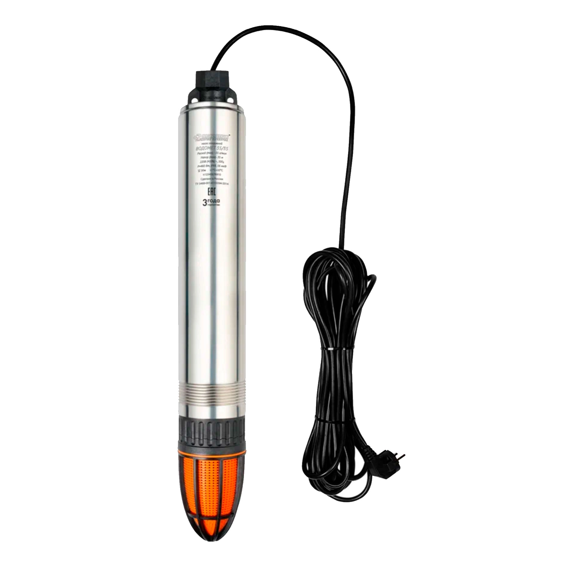 Погружной насос «ВОДОМЕТ 3Д» 55/70 с диаметром 78 мм применяется для подачи воды в дом из скважин, колодцев и других источников. Макс.расход 55 л/мин. Макс. напор составляет 70м водяного столба, т.е. при закрытом кране насос развивает давление 7бар. Корпус выполнен из нержавеющей стали высокого качества и не подвержен коррозии.