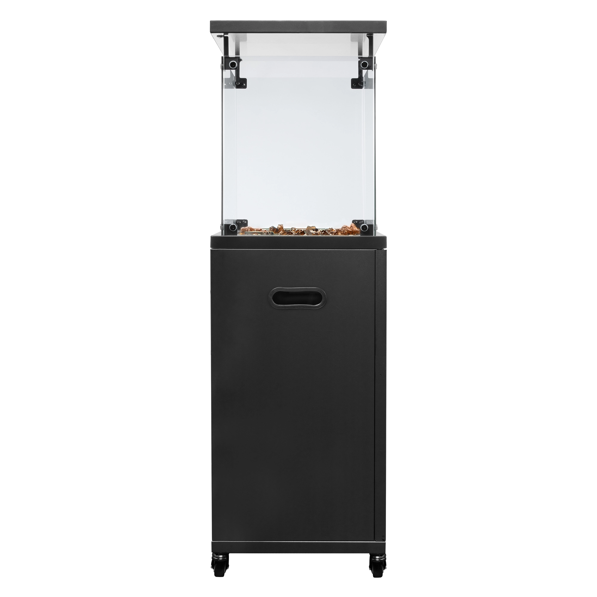 Корпус камина BOGH-14G изготовлен из высококачественной стали с порошковым покрытием, верхняя крыша частично защищает от попадания атмосферных осадков. За безопасность эксплуатации отвечает многоуровневая система защиты. Датчик наклона отключает пламя при наклоне газового обогревателя более чем на 45°, термоэлектрический датчик и электромагнитный клапан сразу же останавливают подачу газа в критических ситуациях, таких как затухание пламени или утечка газа. За счёт встроенной колёсной базы обогреватель свободно и безопасно можно перемещать по любой поверхности.