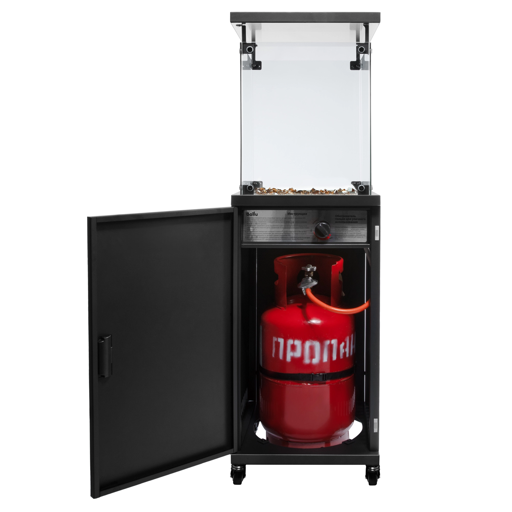 Ballu BOGH-14G - современный уличный газовый камин для создания вокруг себя уютной атмосферы. Несмотря на компактные размеры шириной 42 см и высотой 135 см, очень манёвренный и при этом устойчивый. Мягкий обогрев с повышенной теплоотдачей через термостойкое стекло на уровне сидящего человека подойдет для дружной компании. Декоративные стеклянные кристаллы, находящиеся вокруг горелки, добавляют изысканности и притягивают внимание особенно в вечернее время.