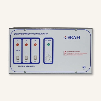 Трехступенчатый пульт управления для котла ЭВАН ЭПО состоит из корпуса с размещенной в нем аппаратурой управления и сигнализации.