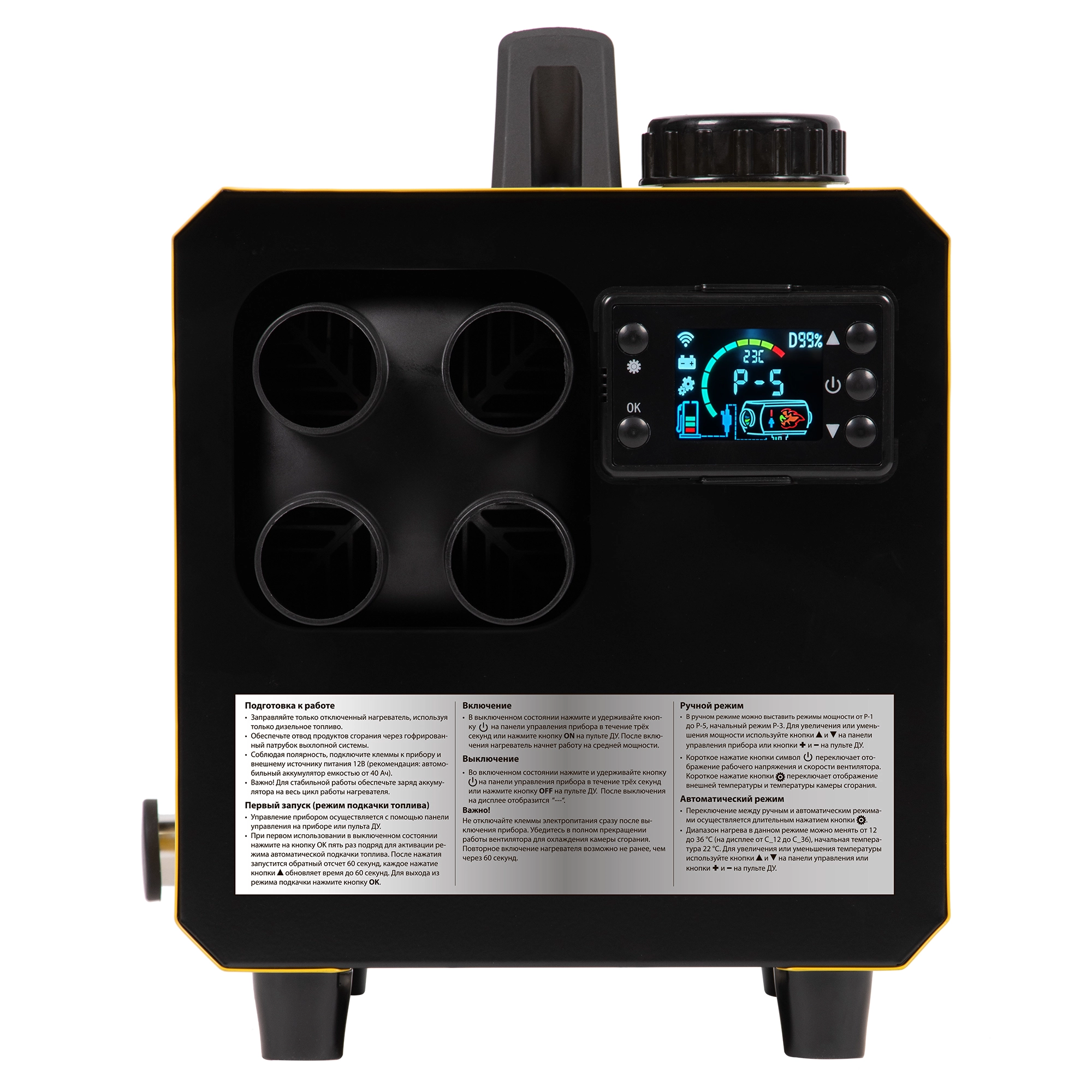 Дистанционное управление — включение/выключение пушки и регулировка температуры с помощью пульта ДУ