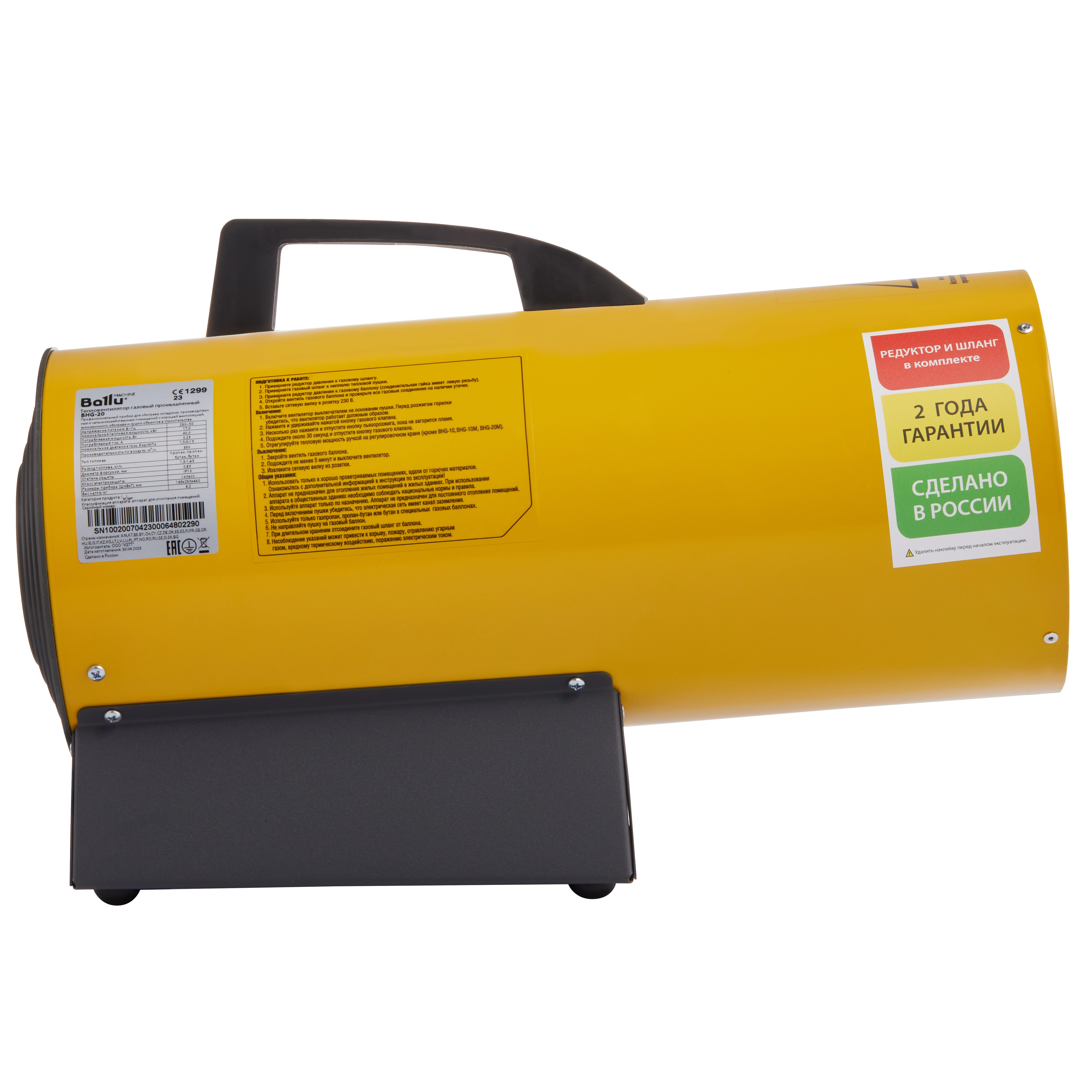 Газовые тепловые пушки BALLU серии BHG-20 – это мощные профессиональные теплогенераторы, работающие на сжиженном газе пропане и пропан-бутане. Практически нечувствительны к резким перепадам температур и легко переносят транспортировку. Металлический корпус газовой пушки обладает теплоотражающими свойствами и надежно защищен антикоррозионным покрытием, даже при использовании агрегата во влажных помещениях. Благодаря наличию многоуровневой защитной автоматики, тепловая пушка самостоятельно выключается при исчерпании запасов топлива и перекрывает подачу газа в случае погасания пламени или при перегреве.