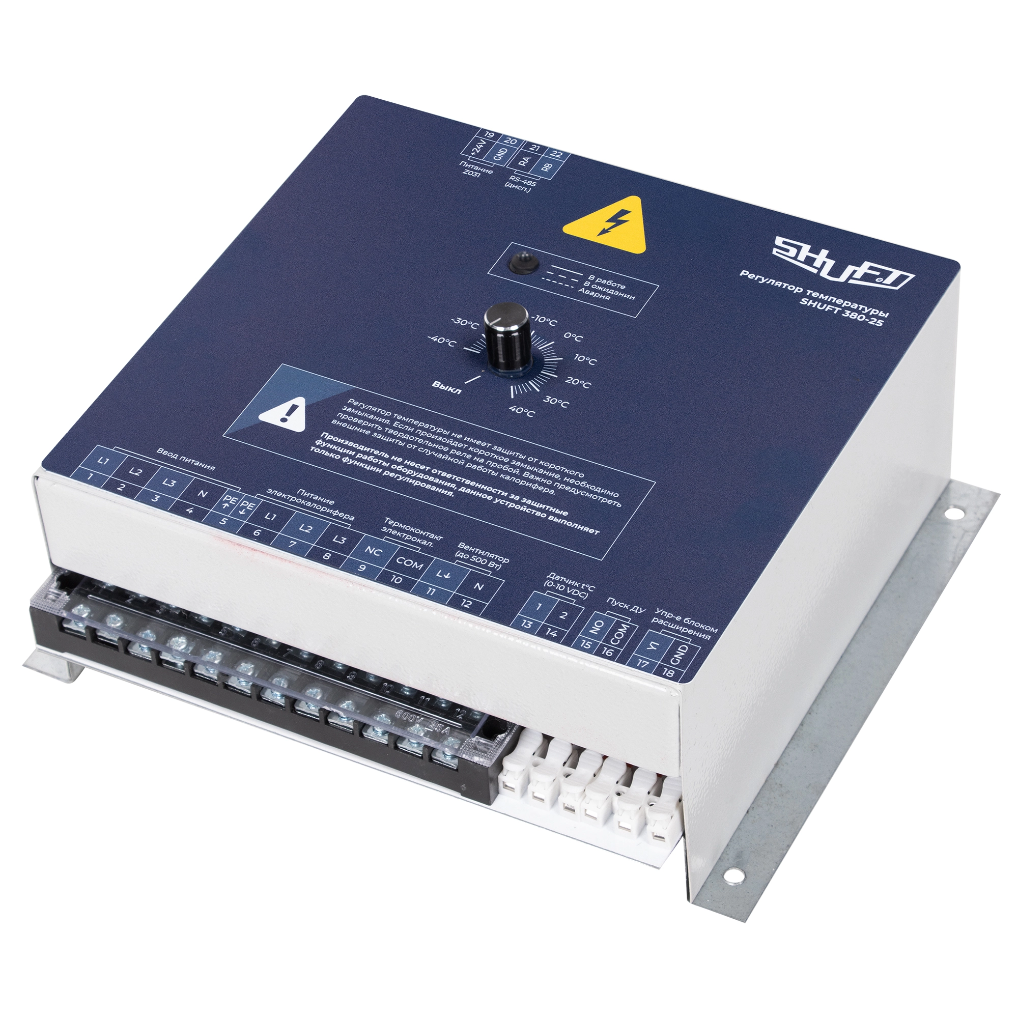Трехфазный регулятор Shuft (Шуфт) 380-25 (380В, 25А, 16 кВт) используется для настройки температуры калорифера. С помощью устройства открывается возможность прямого управления приточным вентилятором. Для подключения и использования дистанционной панели управления доступен протокол подключения ModBus (RS485).