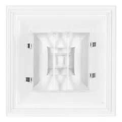 Потолочная решетка предназначена для подачи и удаления воздуха в системах вентиляции и кондиционирования. Решетка изготовлена из высококачественного алюминиевого профиля и окрашена методом порошкового напыления в белый цвет (RAL 9016). Для удобства обслуживания и монтажа внутренняя часть решетки может выниматься и устанавливаться на уже смонтированную раму. Монтаж решетки к воздуховоду осуществляется с помощью самонарезающих винтов. Решетки 4CA также могут комплектоваться клапаном расхода воздуха D.