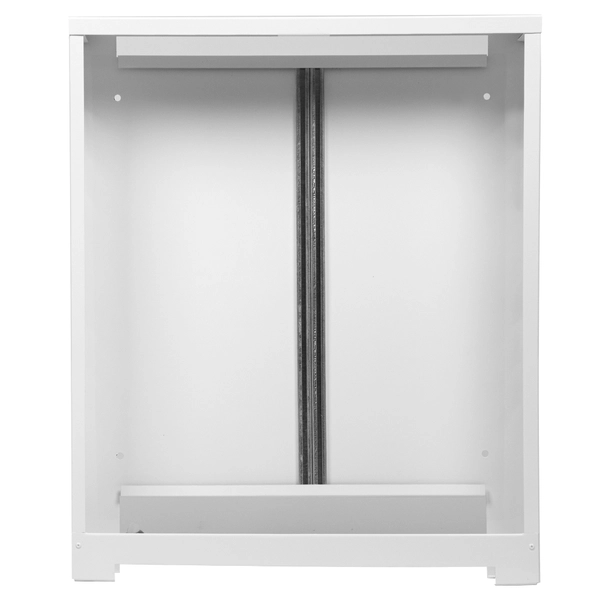 Шкаф изготовлен из цельного стального листа. Технология изготовления без применения сварки. Применяется для монтажа в системах отопления и водоснабжения. Шкаф выполнен из стали, окрашен порошковой краской RAL 9016 с предварительным нанесением фосфатной пленки для придания антикоррозионных свойств изделию. В боковых стенках корпуса шкафа выполнена перфорация, сегменты которой удаляются в любом удобном месте для подсоединения трубопроводов.