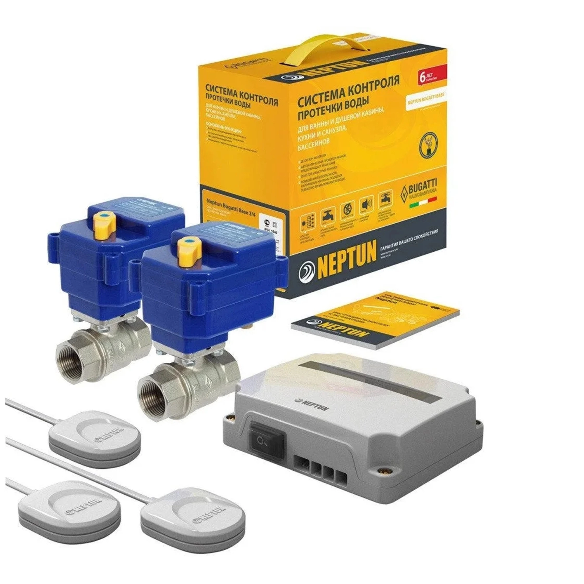 Система контроля протечки воды Neptun Bugatti Base предназначена для своевременного обнаружения и локализации протечек воды в системе водоснабжения и отопления жилых домов, коттеджей, офисных зданий, магазинов. Система заблокирует подачу воды до устранения причин протечки и проинформирует о возникшей аварии звуковым и световым сигналами.