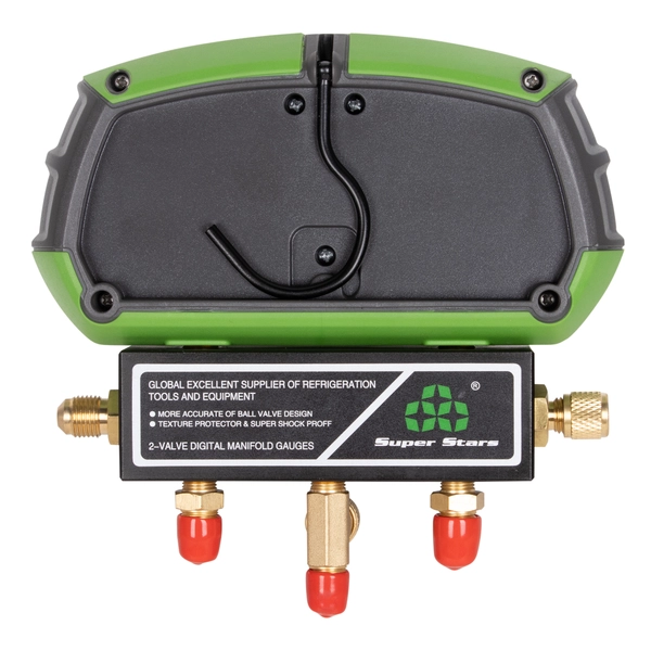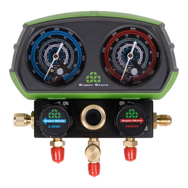 Станция манометрическая 2-х вентильная ST-B268D, используется для осуществления точного измерения давления внутри замкнутого контура трубопровода систем кондиционирования воздуха, холодильных установок. Подходит для хладагента R-410A.