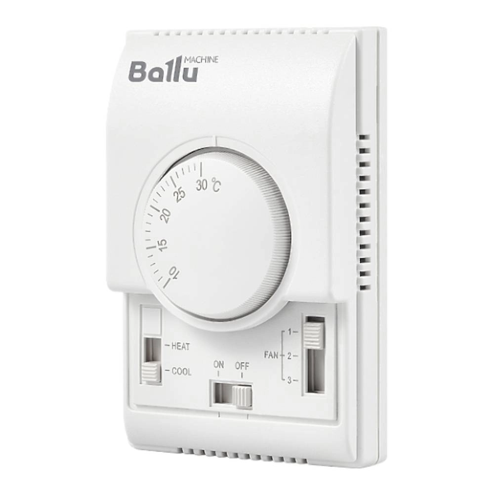 Механический термостат для автоматического поддержания температуры помещения и регулирования расхода воздуха на водяных тепловентиляторах BALLU MACHINE серии W2, W3, W4 и BDS.