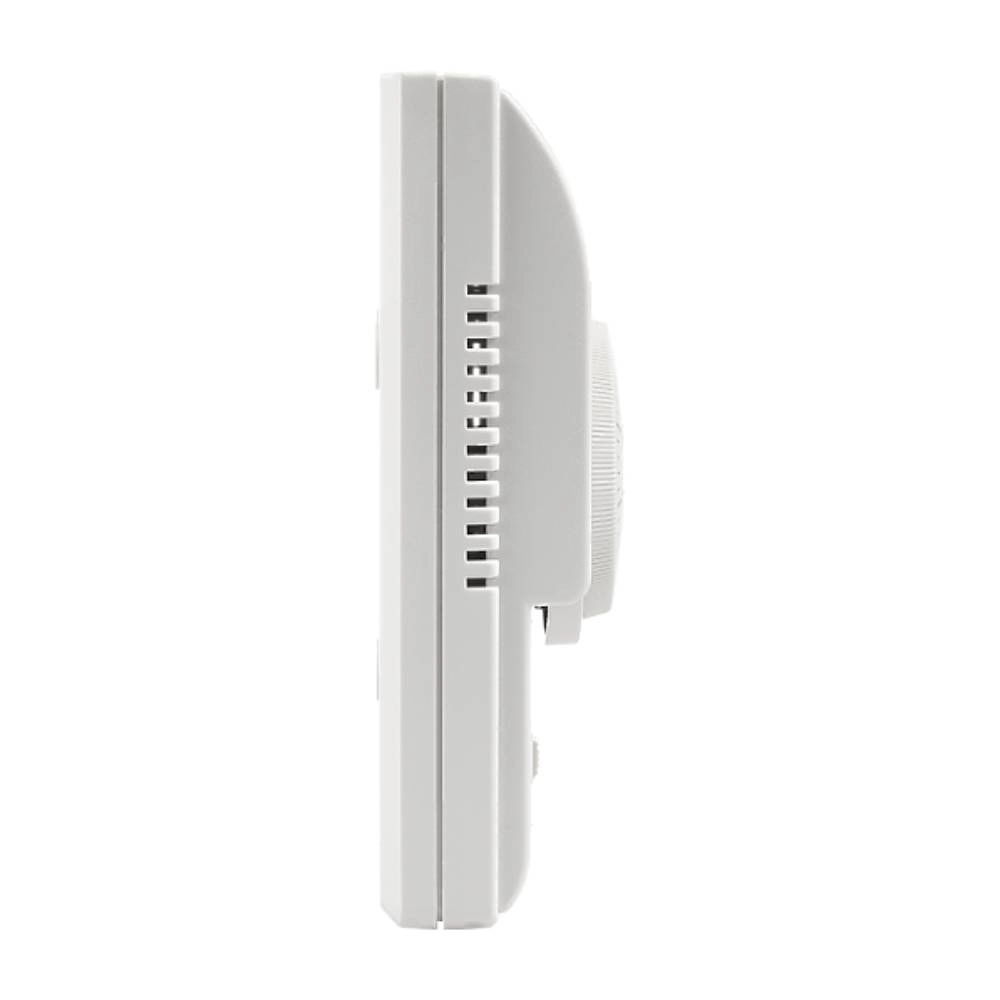 Термостат оснащен встроенным температурным датчиком, который измеряет температуру внутри помещения, и при достижении заданного значения подает команду на выключение вентилятора и перекрытие потока теплоносителя через теплообменник