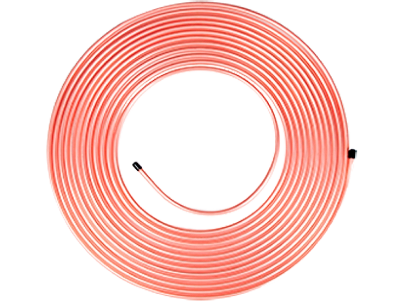 При монтаже оборудования систем кондиционирования воздуха, используются отожженые дюймовые медные трубы. Продукция производится в соответствии с европейским стандартом EN 12735-1. Содержание меди не менее 99,9%. Каждая бухта упакована в герметичную полиэтиленовую пленку и имеет на концах трубы заглушки, для исключения попадания внутрь пыли и грязи. На поверхности трубы нанесена заводская маркировка с техническими характеристиками.
