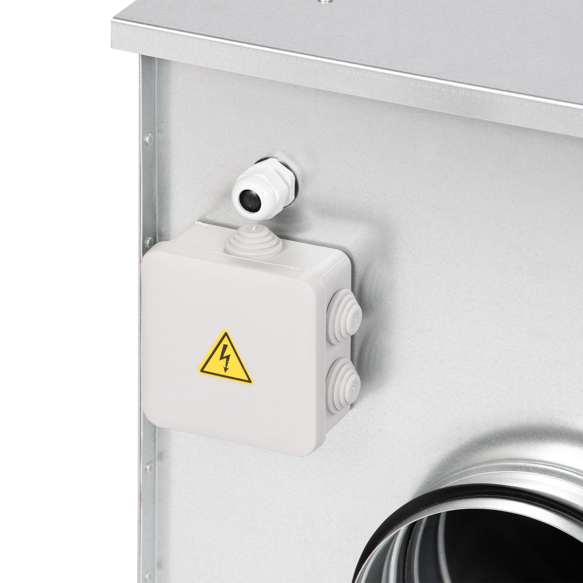 Приточная установка оснащена фильтром класса EU5, электрическим нагревателем с ТЭНами из нержавеющей стали и вентилятором. Вентилятор оборудован асинхронным двигателем с внешним ротором и не требующими обслуживания уплотненными подшипниками с увеличенным сроком службы. Защита двигателя вентилятора осуществляется встроенными термоконтактами. Трехфазные электрические нагреватели оснащены двухступенчатой защитой от перегрева. Первая ступень настроена на 50°С и перезапускается автоматически, вторая ступень настроена на 100°С и перезапускается вручную.