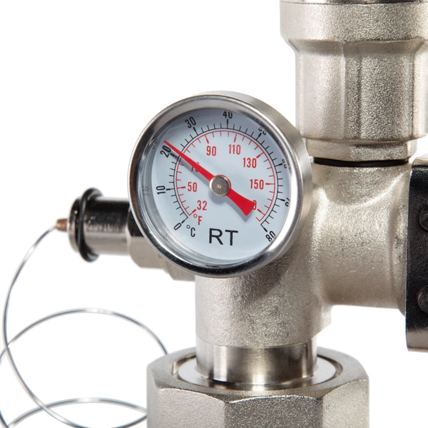 Насосно-смесительный узел для теплого пола Royal Thermo RTO 14.183 предназначен для создания низкотемпературных систем отопления (типа «тёплый пол»). Монтируется на коллекторной группе низкотемпературного контура,