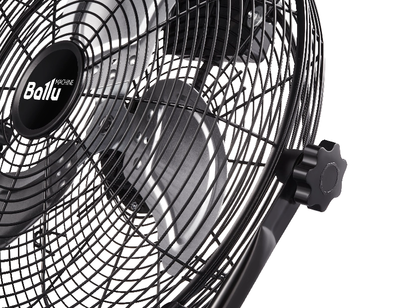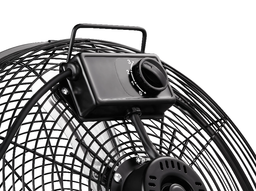 С помощью кронштейна, идущего в комплекте, вентилятор можно подвесить на стену, а угол наклона отрегулировать с помощью удобных барашковых винтов.