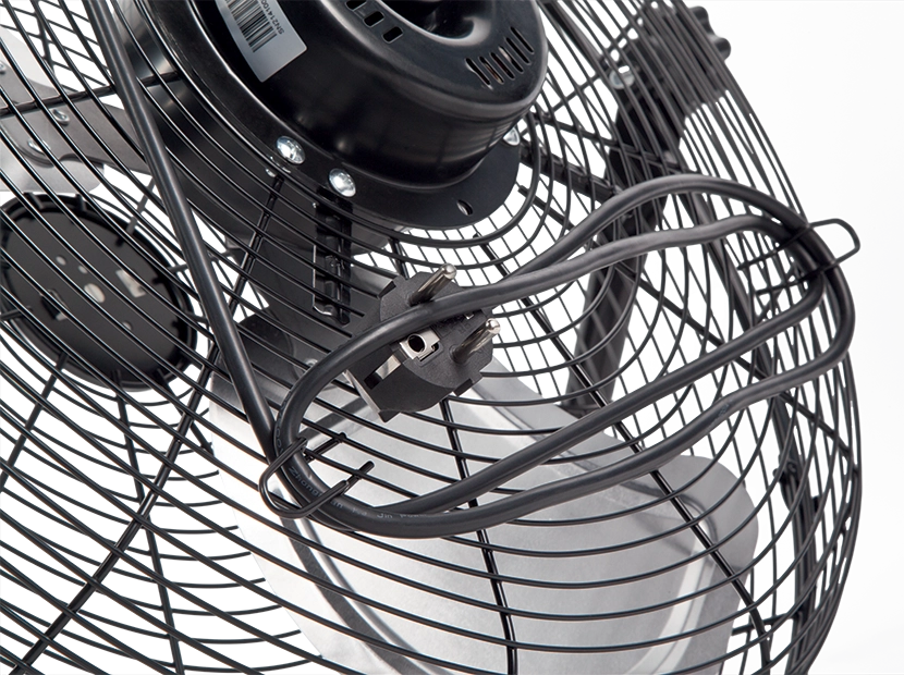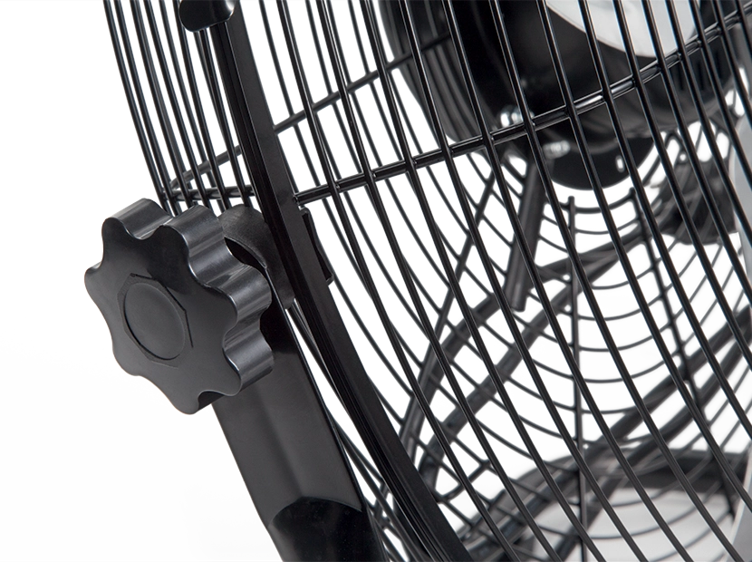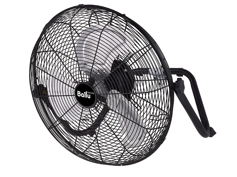 С помощью кронштейна, идущего в комплекте, вентилятор можно подвесить на стену, а угол наклона отрегулировать с помощью удобных барашковых винтов.