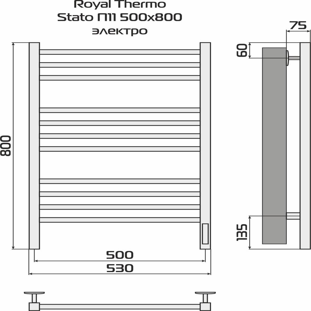 Полотенцесушитель Royal Thermo Stato П11 500х800 электро (встроен. диммер) стальной