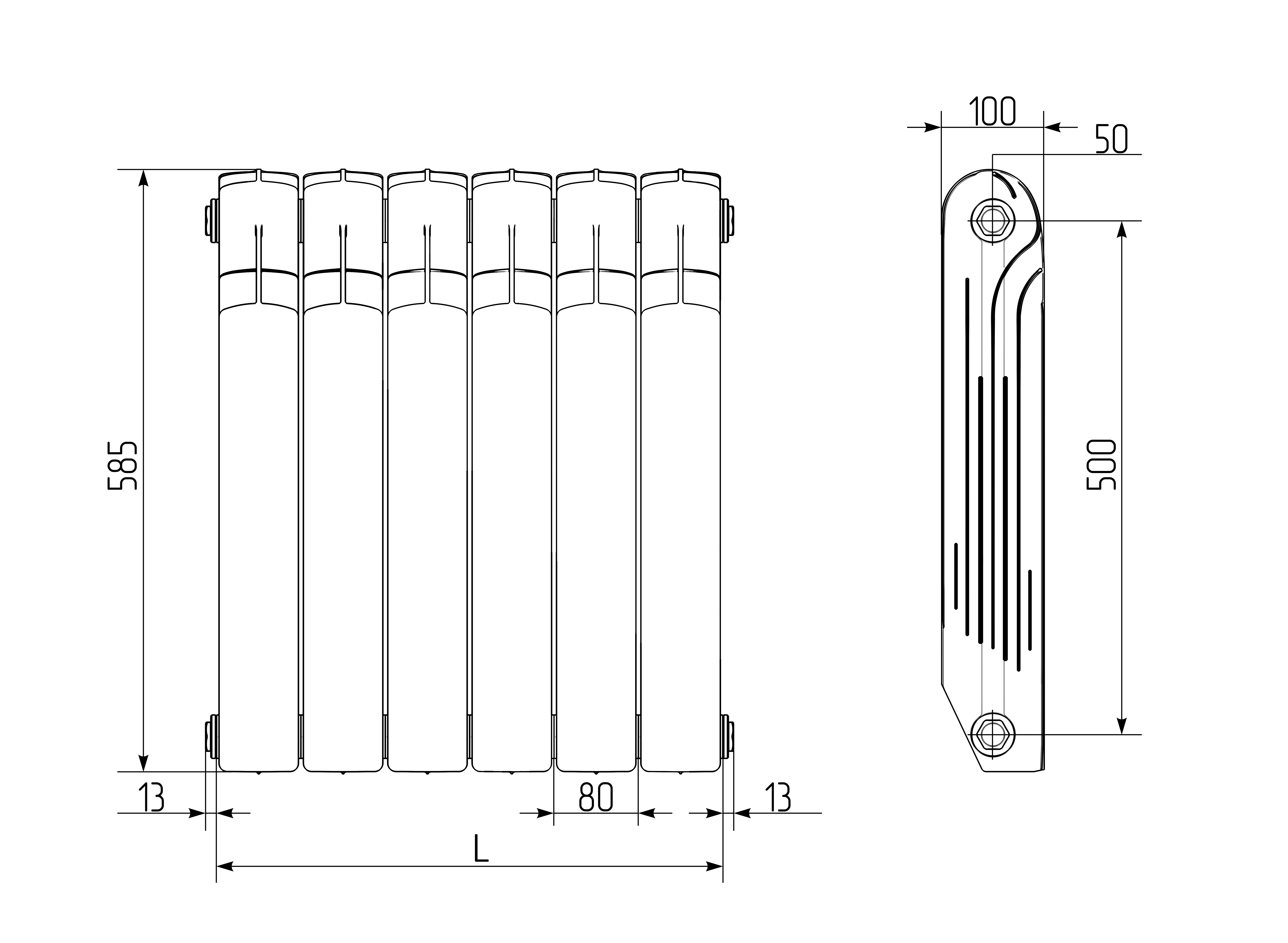 В модели применена запатентованная технология Power Shift*. Дополнительные ребра на вертикальном коллекторе позволяют увеличить площадь теплоотдачи. Благодаря этому мощность каждой секции увеличена на 3-5%.