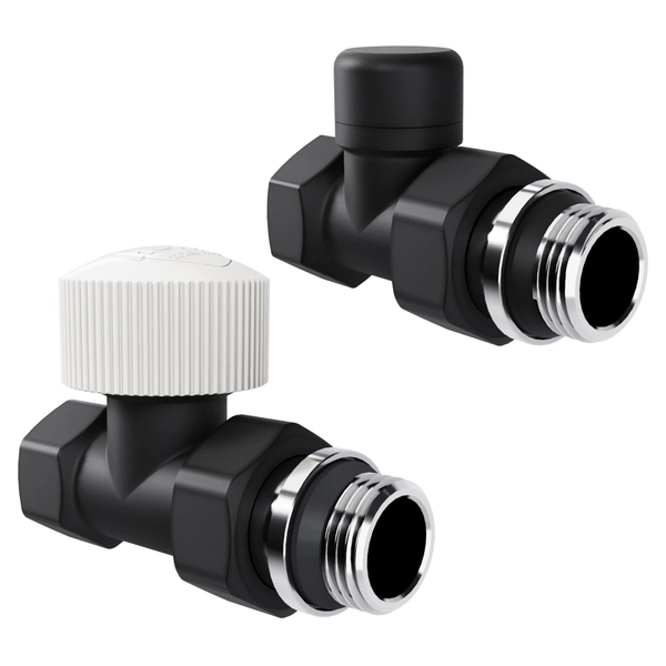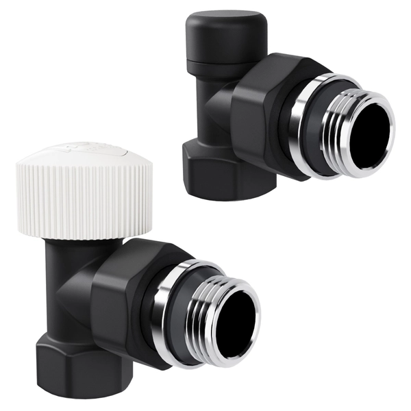 Набор дизайн-вентилей Royal Thermo PIANO, угловой (черный) 1/2"