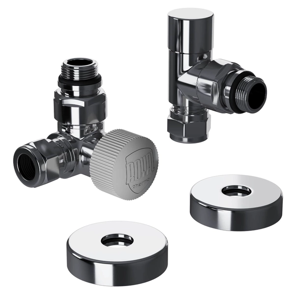 Набор дизайн-вентилей PIANO, угловой (хром) 1/2"