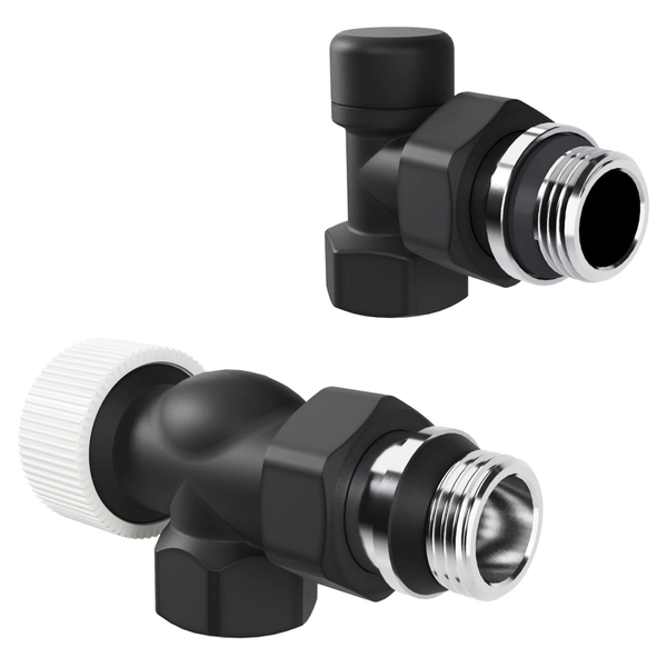 Набор дизайн-вентилей Royal Thermo PIANO, угловой (черный) 1/2"