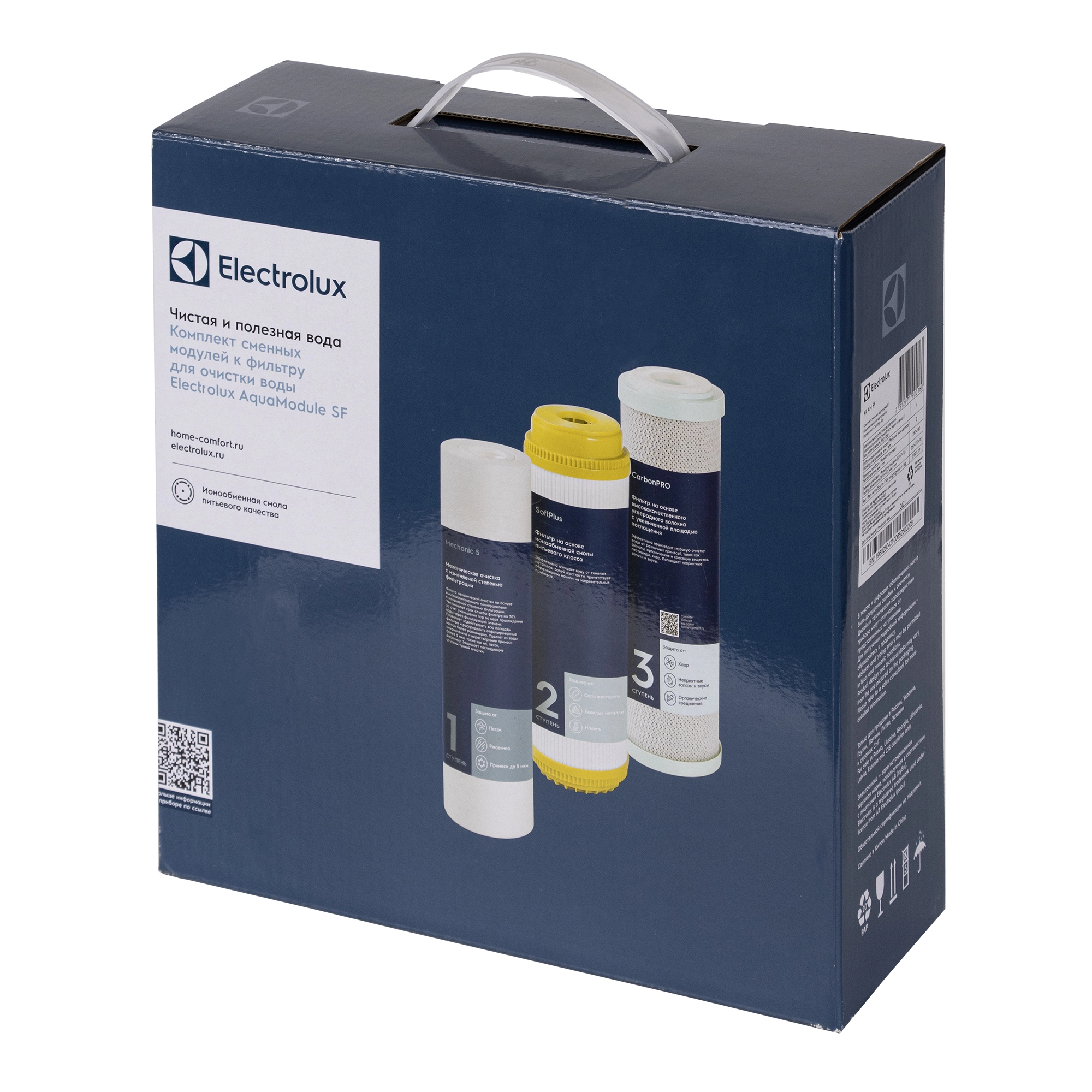 Комплект сменных картриджей к системам фильтрации воды Electrolux серии AquaModule. Отлично подходит для очистки хлорированной воды с высоким содержанием солей жесткости.