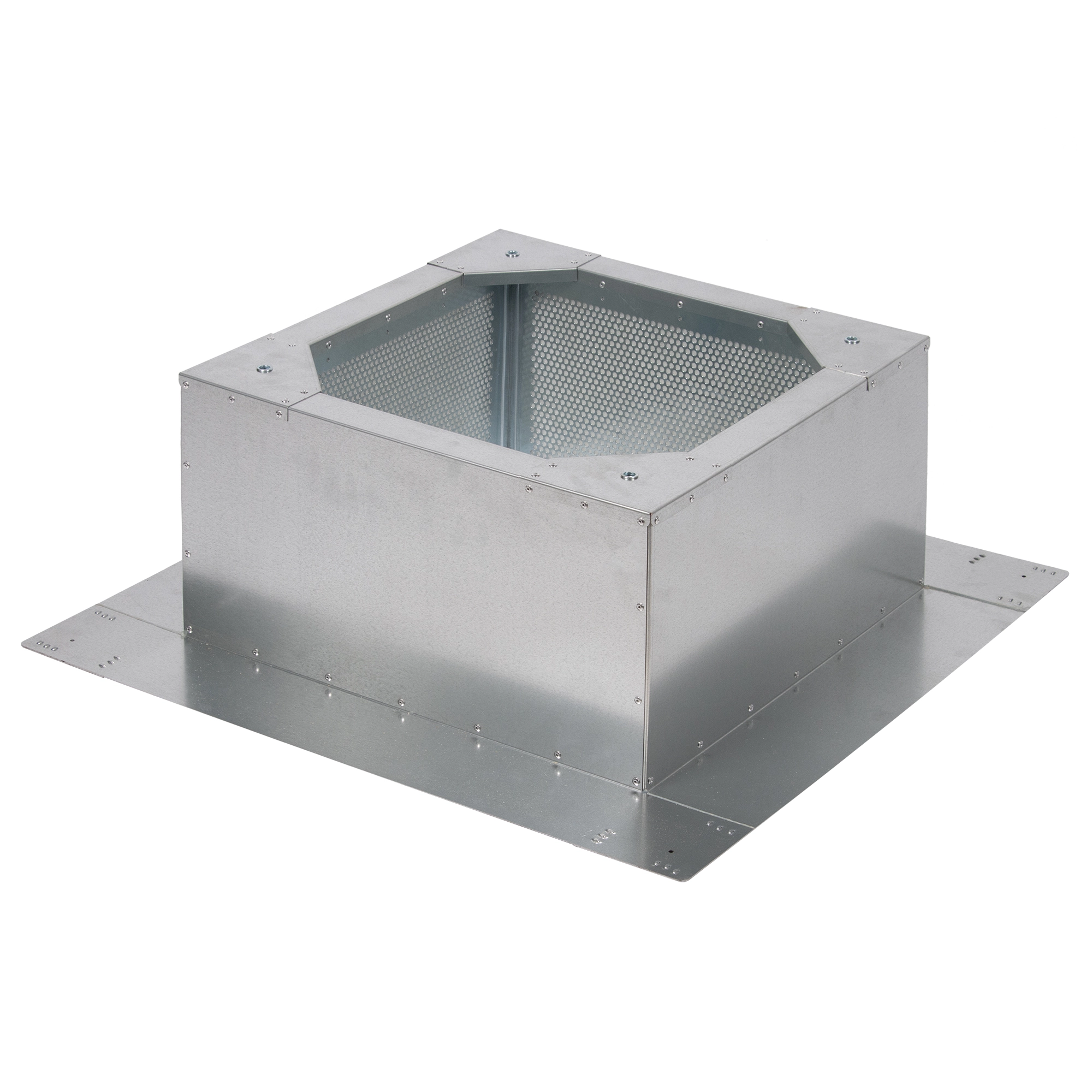 Крышные короба SHUFT RCV для монтажа на плоской кровле выполнены из оцинкованной стали, тощина теплоизоляции 50 мм. При монтаже необходимо осуществить гидроизоляцию соединений коробов с кровлей.