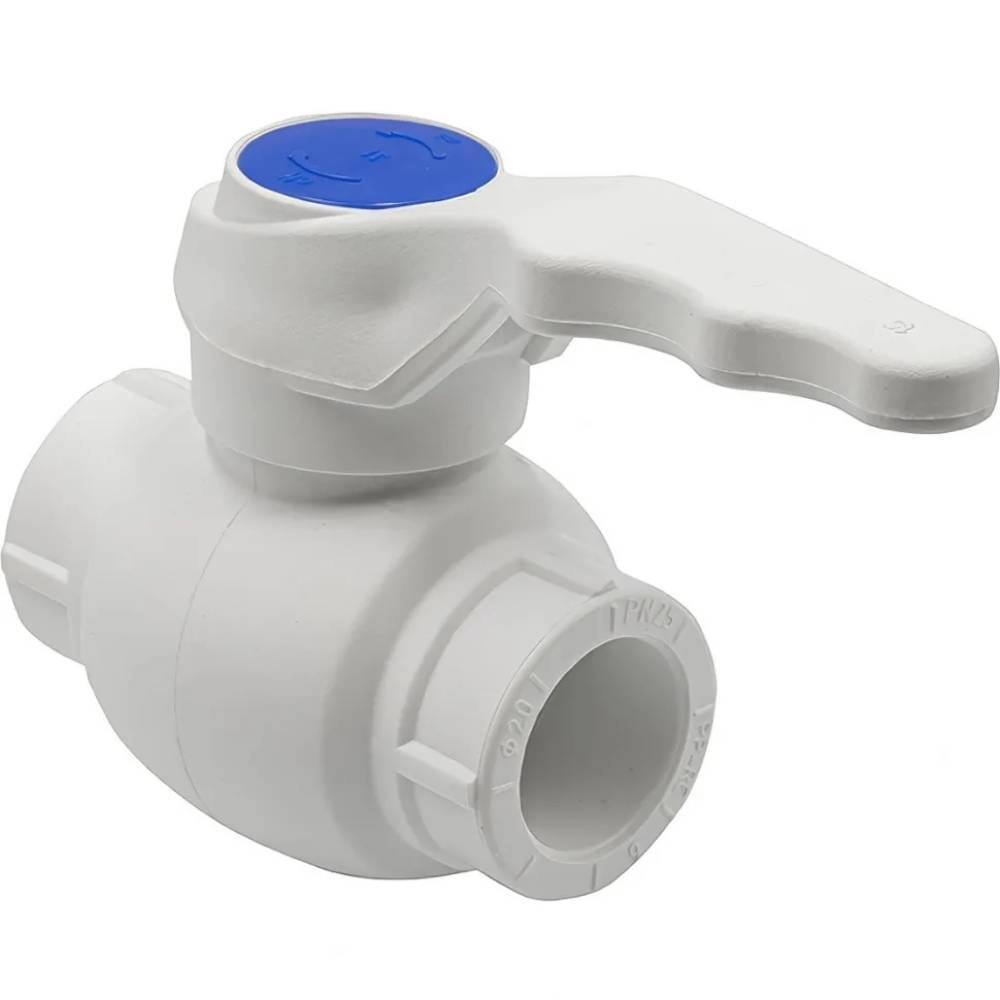 Шаровой кран THERMOLIGHT с ручкой из PP-R, диаметром 20 мм, белого цвета.