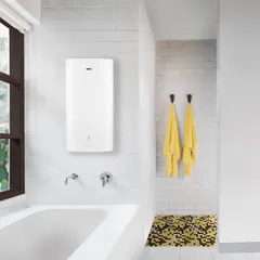 Дизайн водонагревателей позволяет им гармонично выглядеть в обстановке любого современного интерьера. А возможность универсальной установки и плоский корпус позволит быстро найти место для монтажа. За надежность и долговечность отвечает система сухих ТЭНов и магниевый анод увеличенной массы.