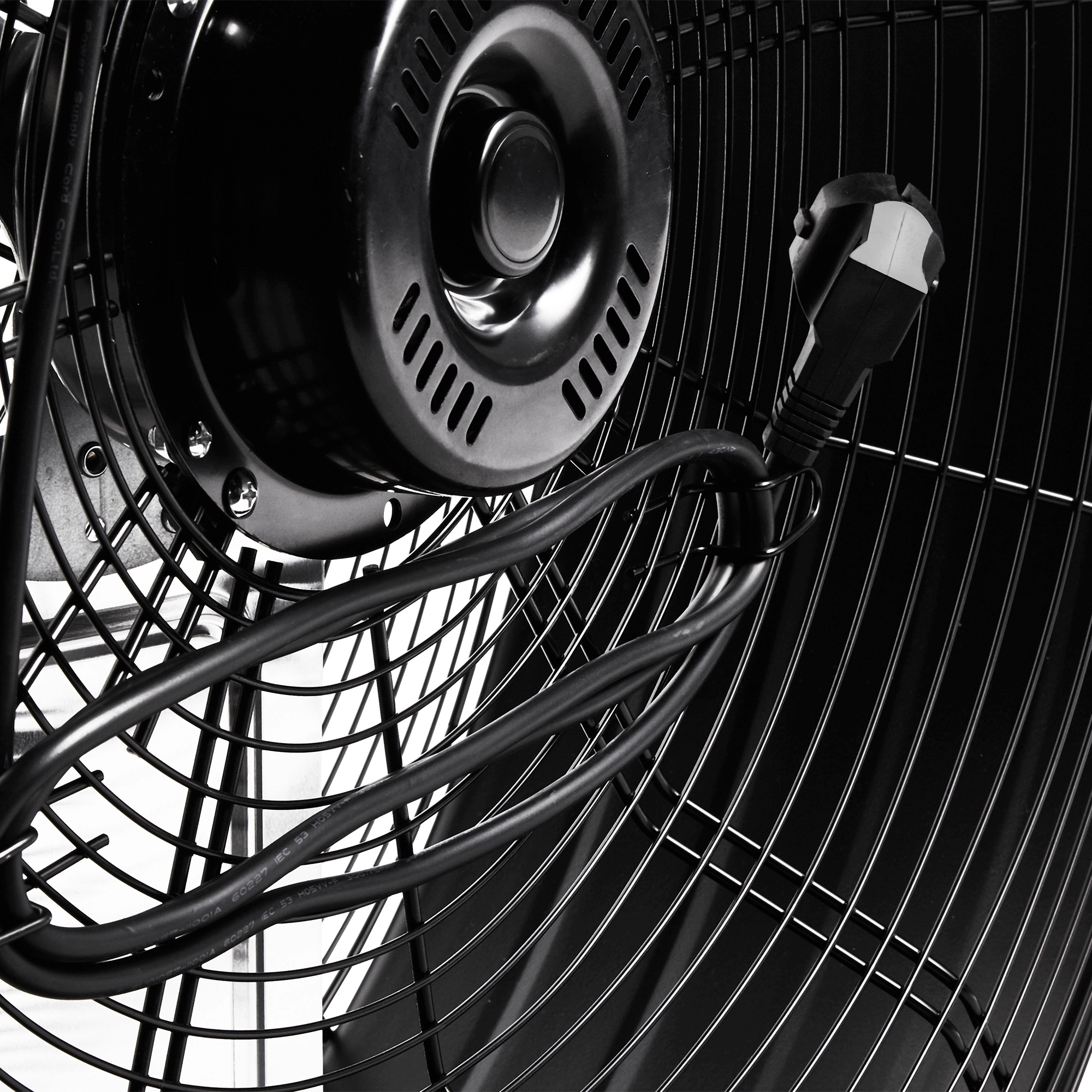 Корпус прибора имеет функцию вращения на 360 градусов, обеспечивая мощный воздушный поток в любом направлении. Для удобства использования вентилятор оснащается специальными элементами для фиксации кабеля на корпусе.