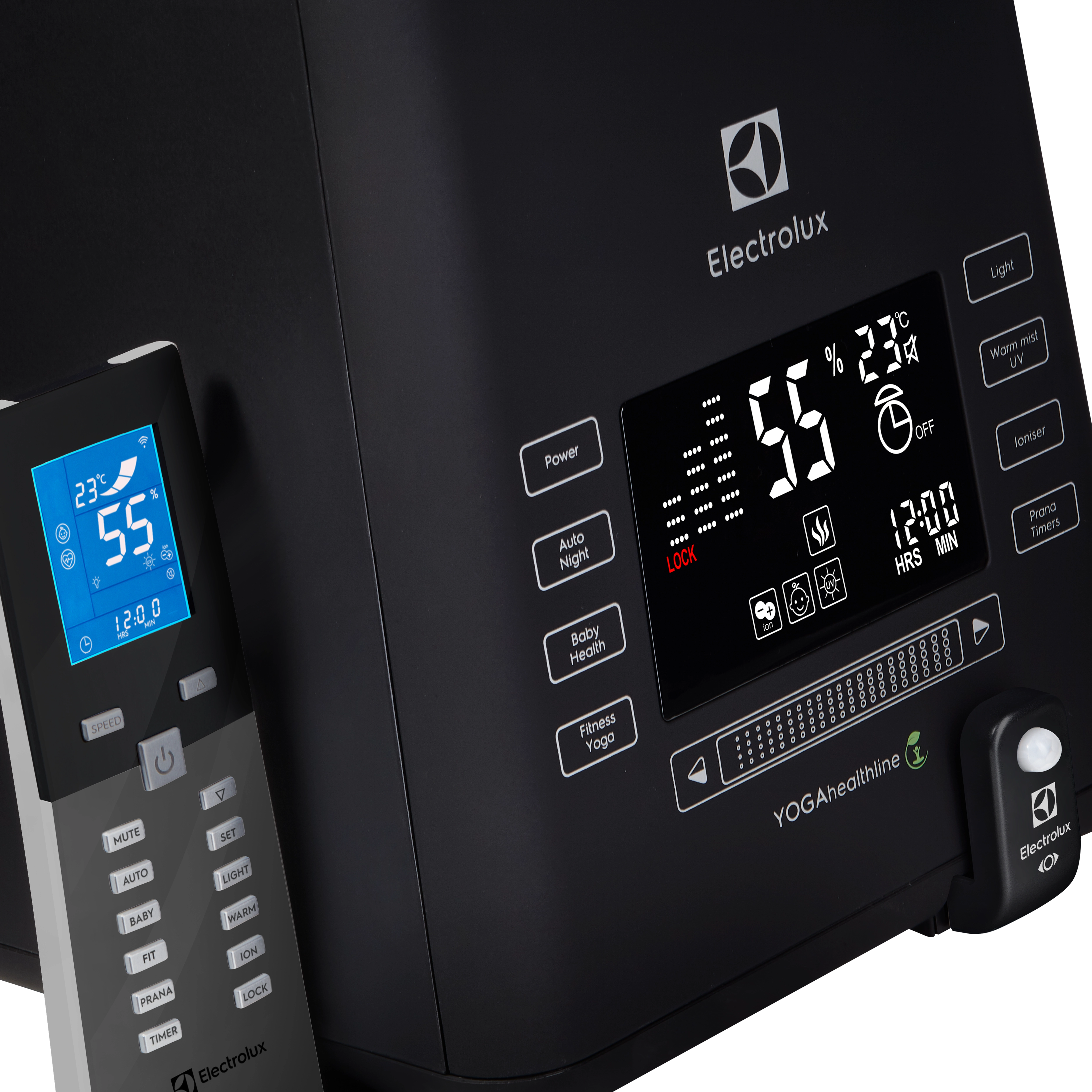 IQ-метеопульт с высококонтрастным дисплеем и ударопрочным акриловым стеклом специально разработан для увлажнителей-ecoBIOCOMPLEX YOGAhealthline. Это многофункциональное устройство, которое выполняет не только функцию пульта управления, но и является метеостанцией, которая отвечает за определение и поддержание влажности.