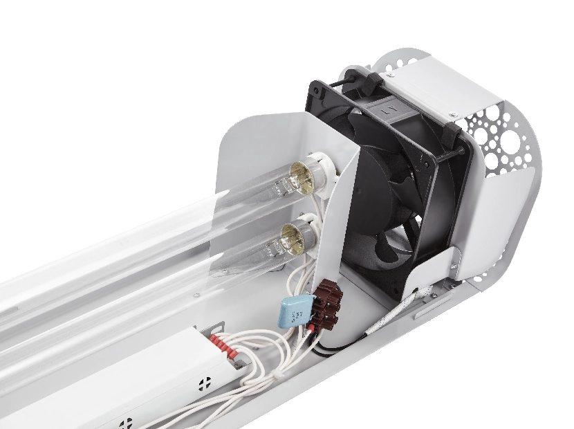 • Полноразмерные бактерицидные УФ-лампы 15 Вт или 30 ВТ (в зависимости от модели рециркулятора), встроенные в обеззараживатель воздуха Ballu ANTICOVIDgenerator, эффективно уничтожает вирусы, бактерии и другие виды патогенной органики: грибки, плесень и споры.