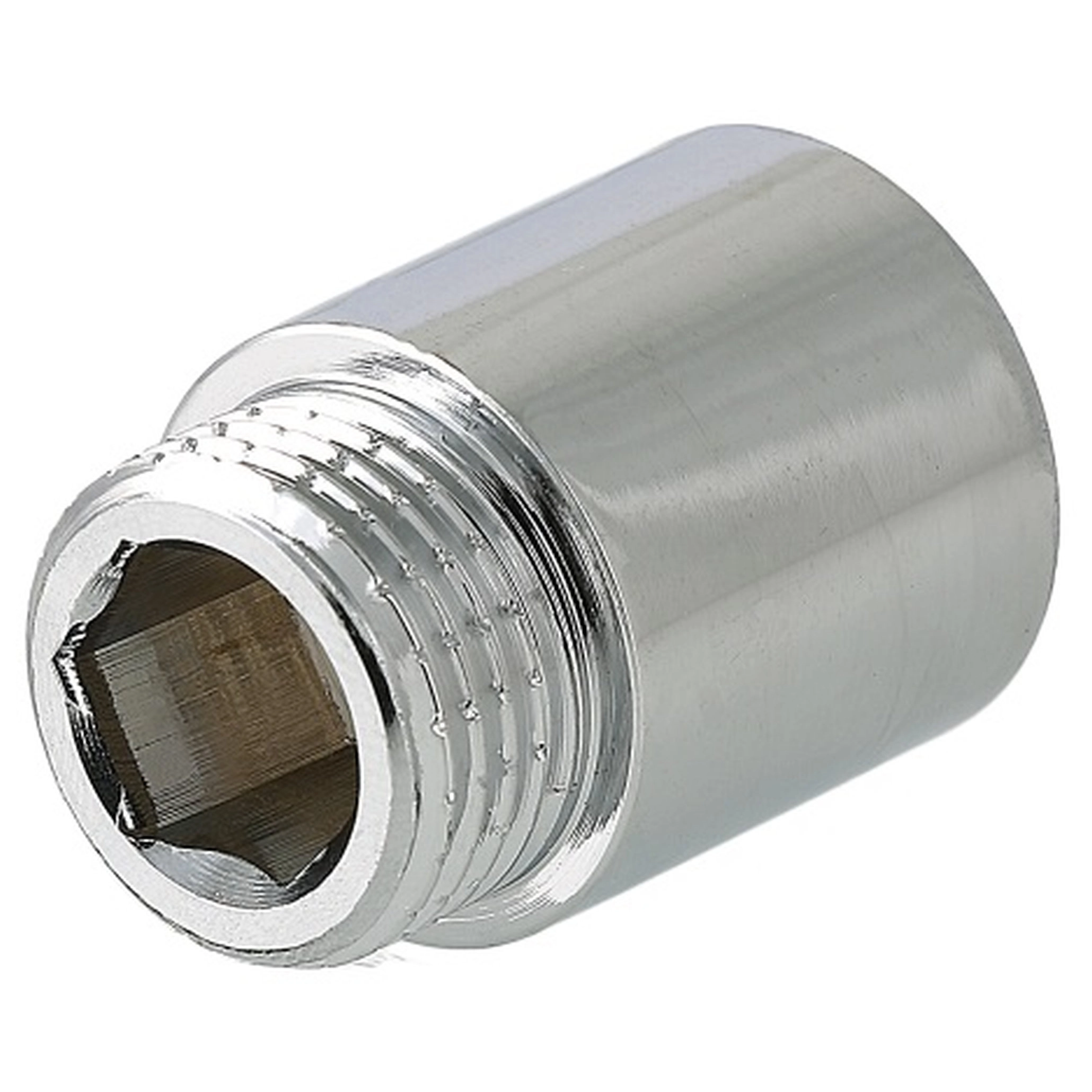 (VTr.198.C)Латунный резьбовой удлинитель с корпусом круглого сечения. Благодаря хромовому покрытию хорошо сочетается с хромированными сантехническими изделиями (полотенцесушители, смесители и т.д.). Резьба – внутренняя/наружная, цилиндрическая трубная по ГОСТу 6357 (ISO 228, EN 10226), совместимая также с наружной конической трубной резьбой по ГОСТу 6211 (ISO R7).