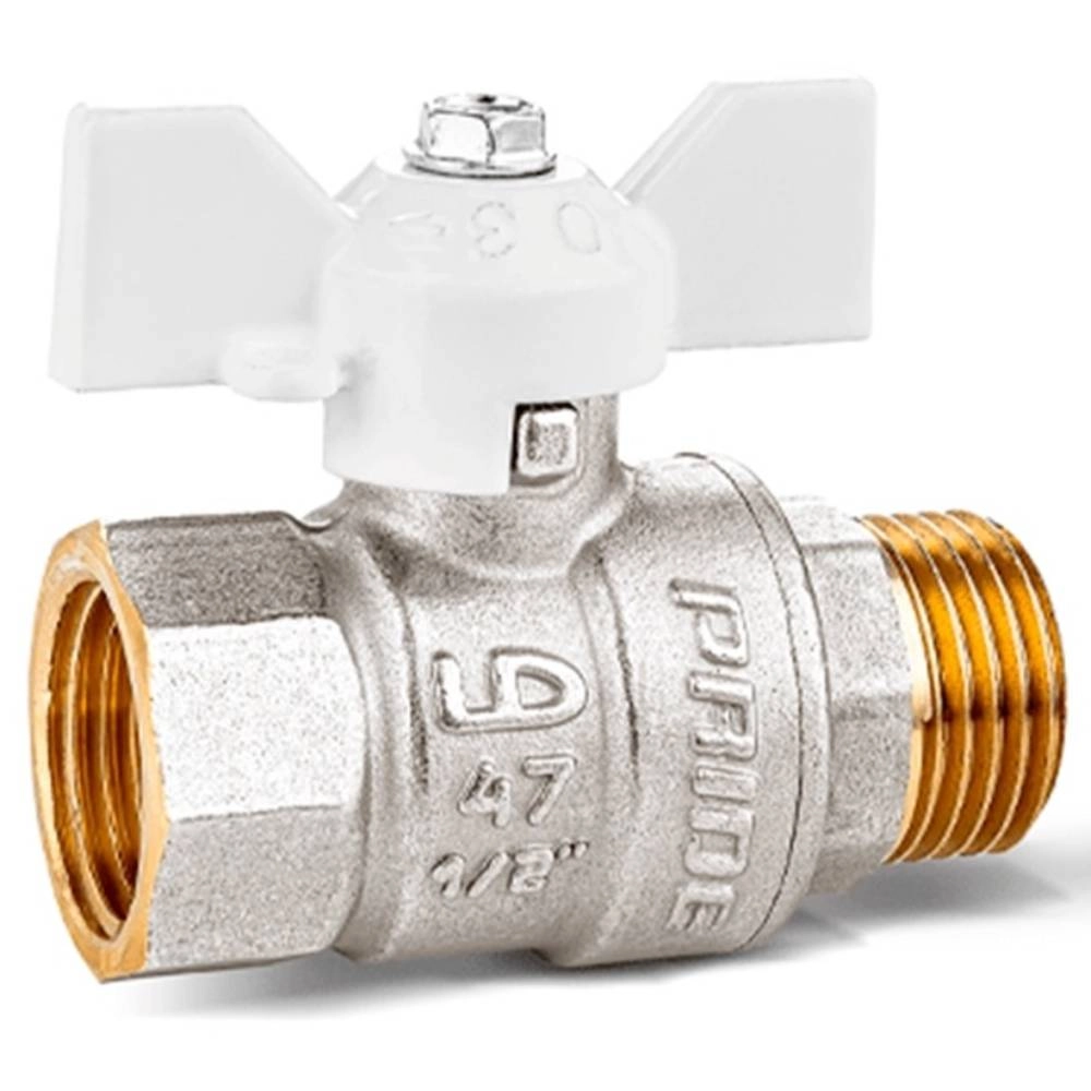 Кран шаровой латунный LD Pride 47.15.B-Н.Б (White) Ду 15 Ру 40 вн-нр, (бабочка)