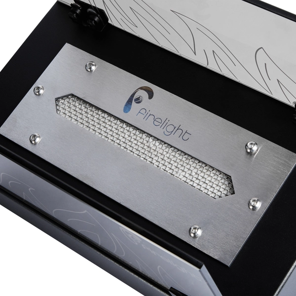 Закаленное жаропрочное стекло настольного биокамина BFP/T-3520 Glass украшено лазерной гравировкой в виде языков пламени и прекрасно акцентирует 20-ти сантиметровую линию живого огня.