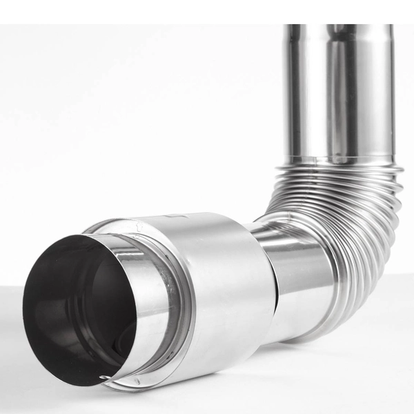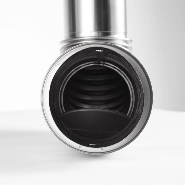 Дымоход поставляется в сборе и состоит из трех частей: прямая труба металлическая сварная, клапан обратный металлический, колено сварное металлическое.