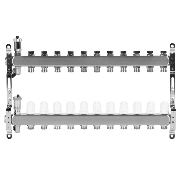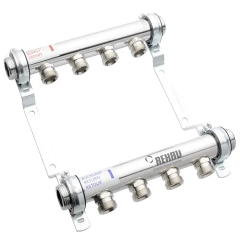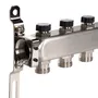 Благодаря удобной конструкции – коллектор легко монтировать и обслуживать. А применение высококачественной нержавеющей стали марки AISI 304 для производства коллектора позволяет защитить прибор от воздействия коррозии. Наличие нескольких выходов дает возможность подключить сразу несколько контуров.