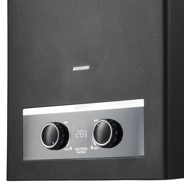 Флагманская серия газовых водонагревателей Royce, в конструкцию которых положены самые передовые технологии, обладает высокой производительностью и долговечностью. Приборы оснащены удобным и безопасным электронным розжигом, а также информативным современным цифровым дисплеем, который отображает температуру нагрева воды, заряд батареи и индикацию пламени на горелке.