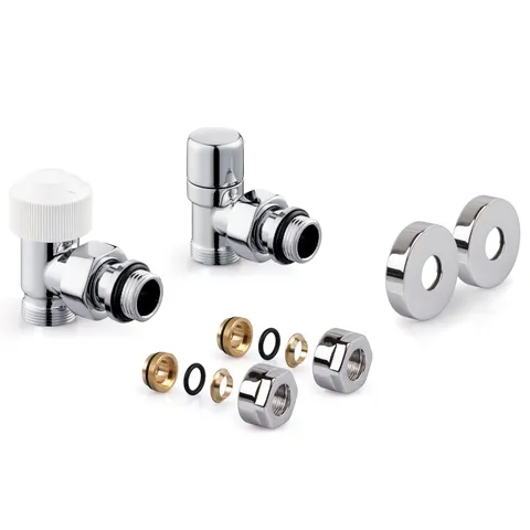 Термостатические наборы серии Design поставляется в комплектации: клапан термостатический для установки на подающий трубопровод, запорный клапан для установки на обратный трубопровод.